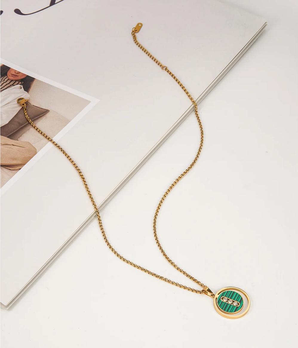 Latest 18K Gold Plated Stainless Steel Jewelry Beads Chain Hollow Round Shell Zircon Pendant For Women Party Necklace
